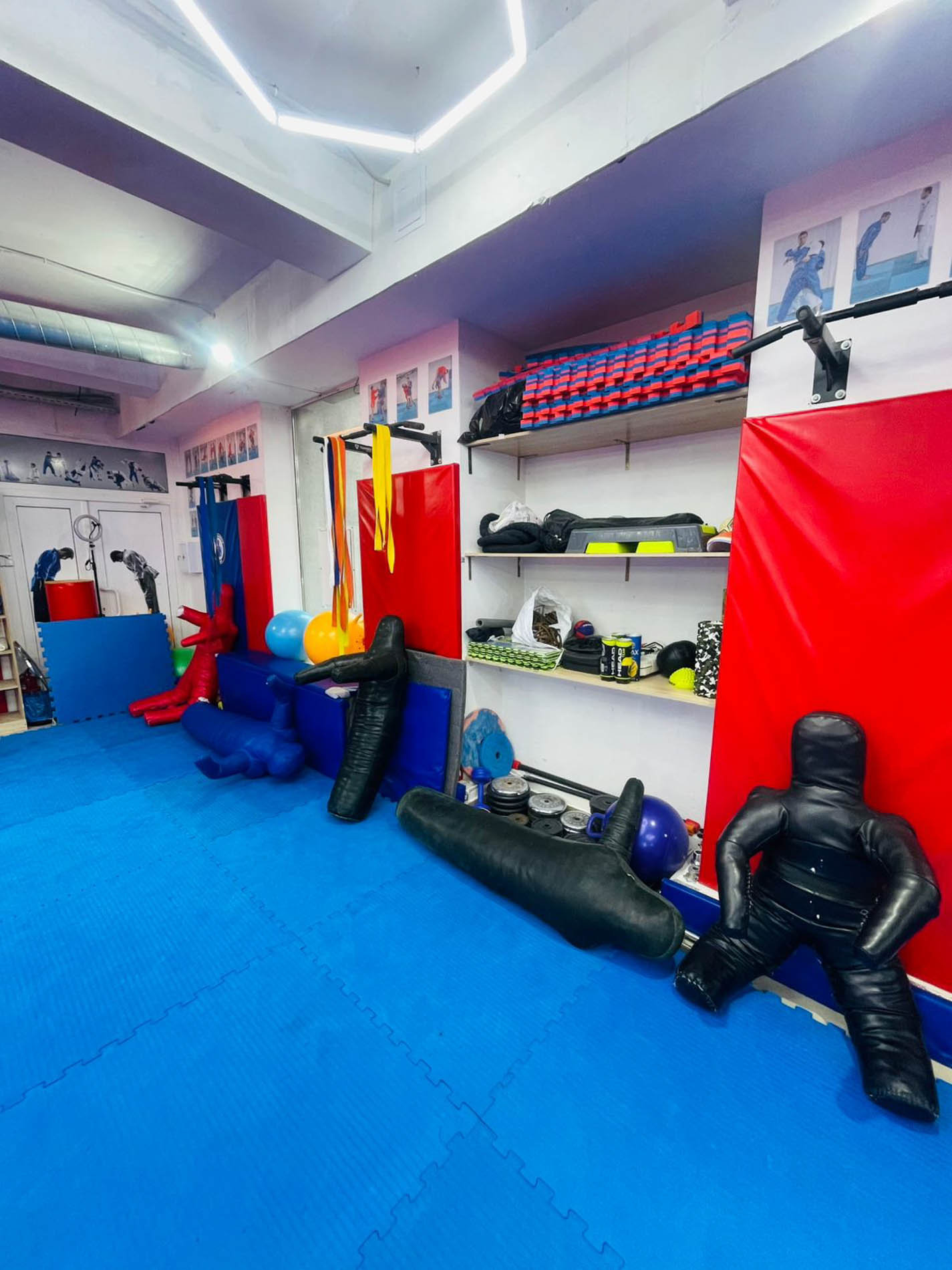 Тренировочный процесс выстроен максимально грамотно: разминка (легкая атлетика, акробатика, гимнастика), специальные упражнения для подготовки и разогрева мышц и связок, участвующих в выполнении приёма, детальный показ и отработка приёма-комбинации, ОФП – для укрепления мышц, растяжка.